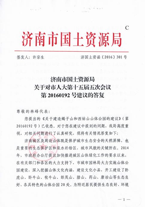 關(guān)于轉(zhuǎn)發(fā)濟(jì)南市國(guó)土資源局對(duì)我公司市人大代表的答復(fù)