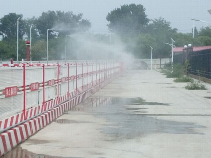 3.配備揚(yáng)塵監(jiān)控系統(tǒng),對揚(yáng)塵進(jìn)行實(shí)時(shí)監(jiān)測;安裝洗車臺,對進(jìn)出車輛進(jìn)行清洗;安裝噴淋,定時(shí)定點(diǎn)進(jìn)行灑水降塵;配備灑水車,對施工現(xiàn)場定時(shí)灑水降塵,配備霧炮進(jìn)行降塵;主體施工期間,對道路兩側(cè)裸露部位進(jìn)行了成品草皮及苗木綠化;對出入口硬化,施工現(xiàn)場便道必須采用混凝土硬化覆蓋。