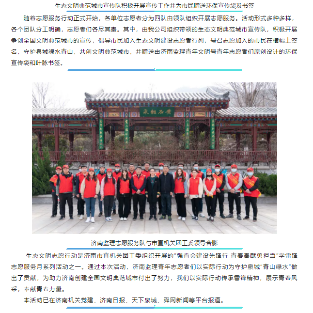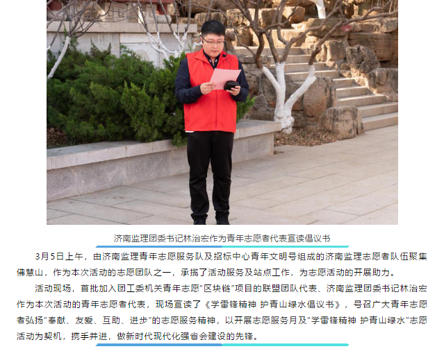 “學(xué)雷鋒精神 護(hù)青山綠水”——濟(jì)南監(jiān)理青年志愿者參加市直機(jī)關(guān)團(tuán)工委助力生態(tài)文明志愿行動(dòng)